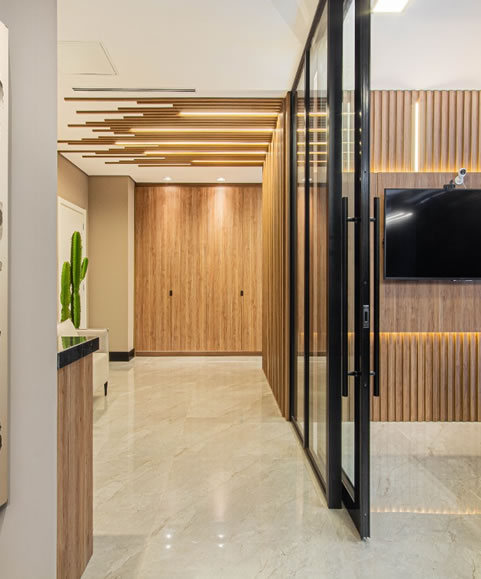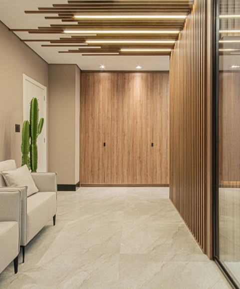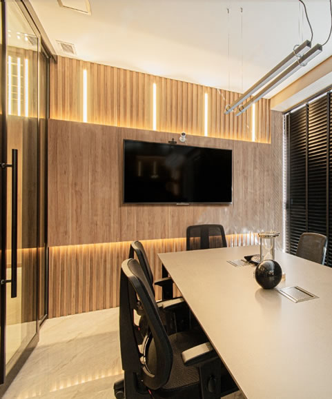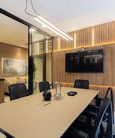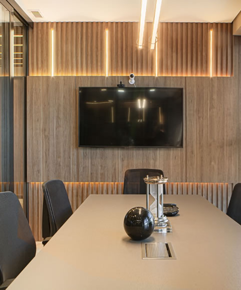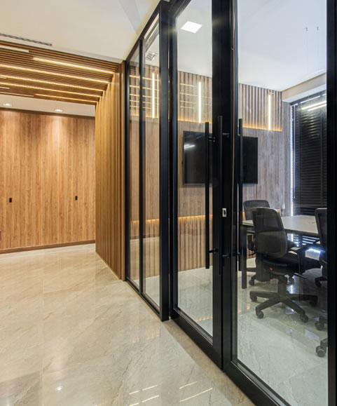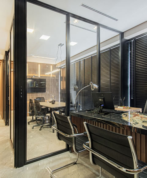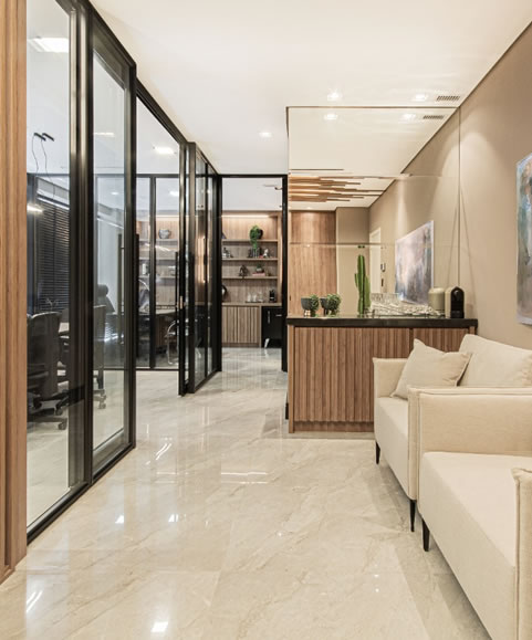 - Portfólio completo com divisórias, mobiliário e marcenaria corporativa.
