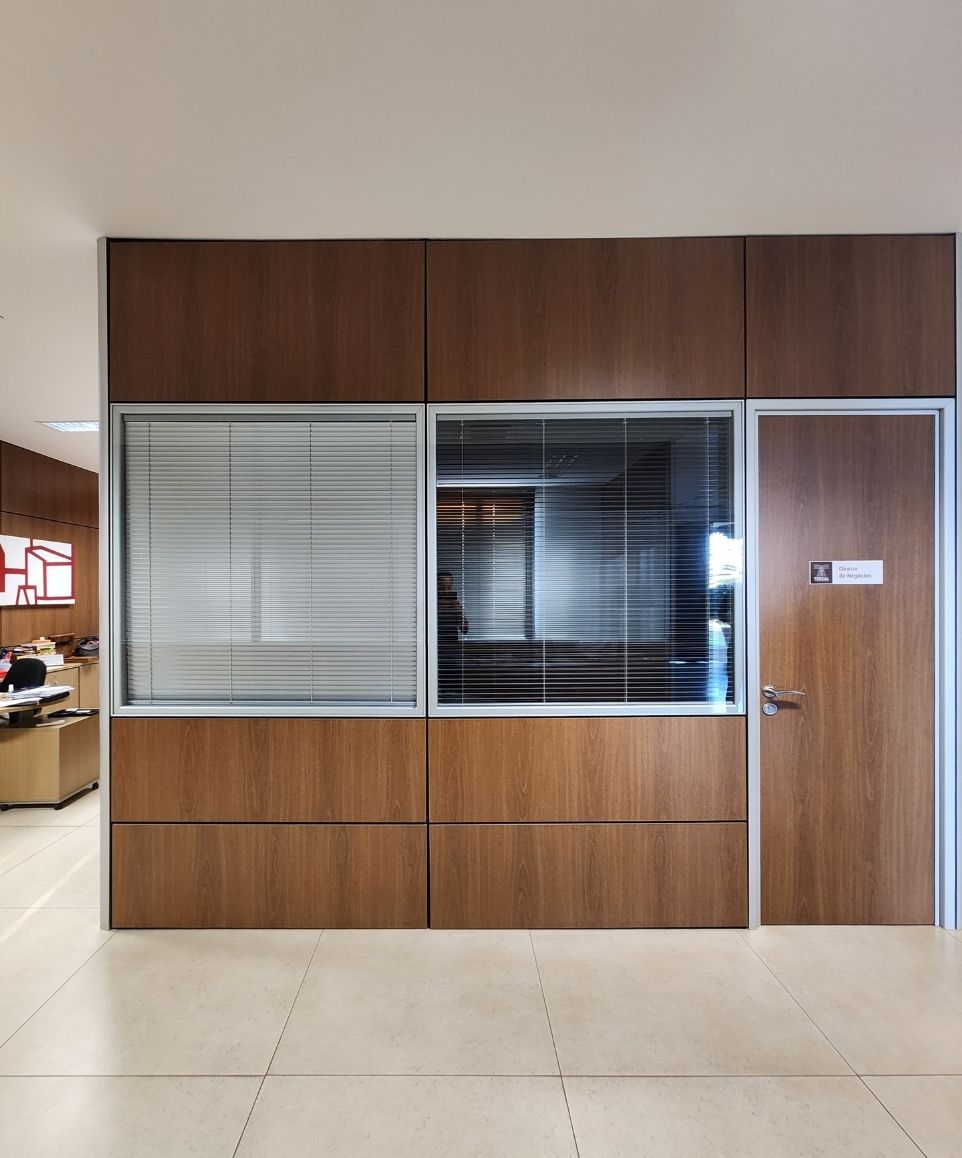 As Divisórias com Persianas foram aplicadas em áreas administrativas e salas de reunião, com foco em: