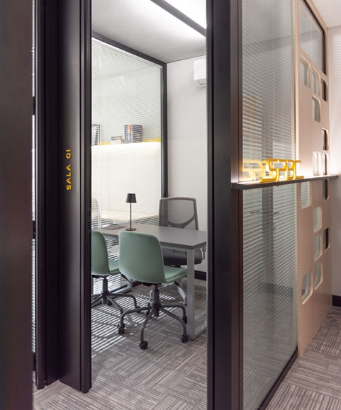 Essa solução é perfeita para escritórios de advocacia, salas de reunião e ambientes executivos que exigem discrição e elegância. Além das divisórias, o projeto contou com:
