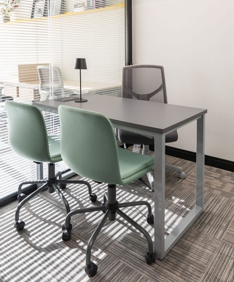 - Cadeiras operacionais Yon e de aproximação Match, no tom verde água, que agregam conforto e um toque de sofisticação ao ambiente.
