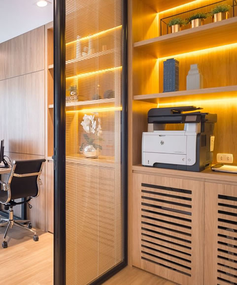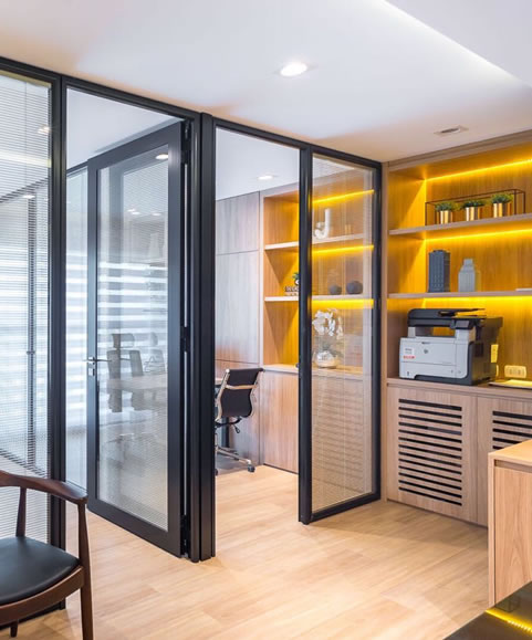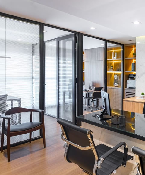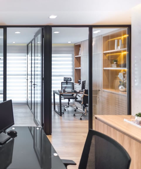 Essa solução é perfeita para escritórios que desejam transmitir profissionalismo sem abrir mão da transparência e da luminosidade natural.