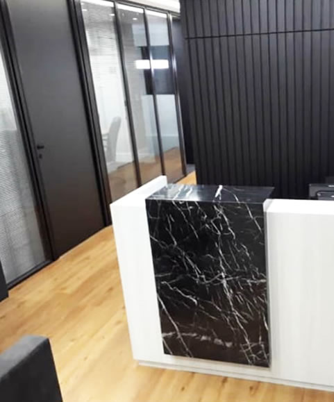 - Portfólio completo com divisórias, mobiliário e marcenaria corporativa.