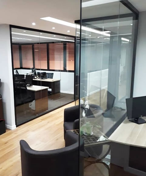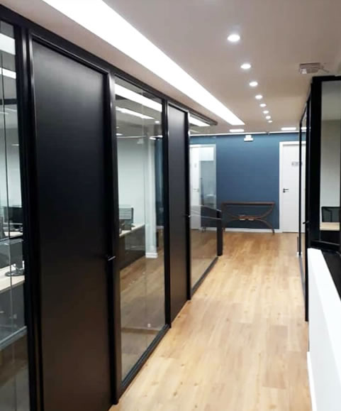 Produtos: Divisórias de vidro S60 e Lumina com perfil preto