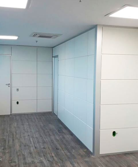 - Ambientes Acústicos: A utilização de materiais acústicos em nossas divisórias ajuda a reduzir o ruído, promovendo um ambiente de trabalho mais tranquilo e confortável;