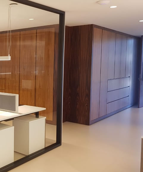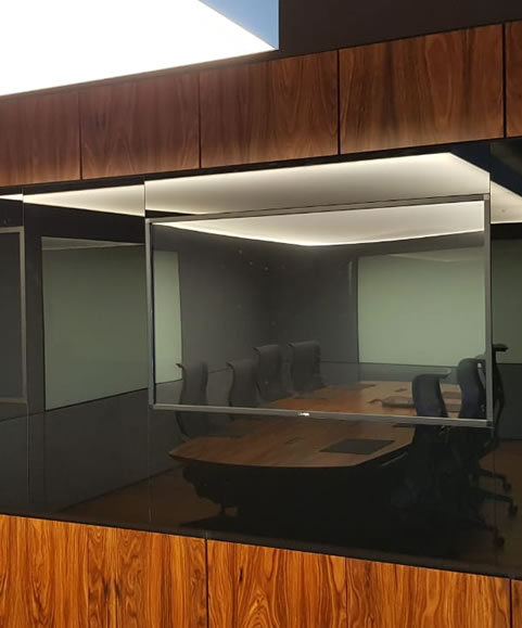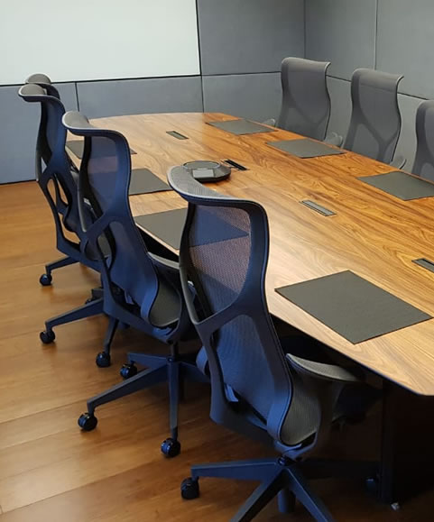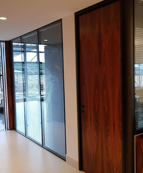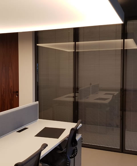- Divisórias S90: isolamento acústico e sofisticação para áreas de diretoria e reuniões;