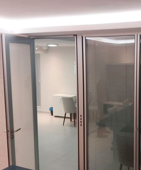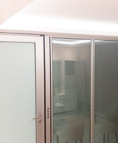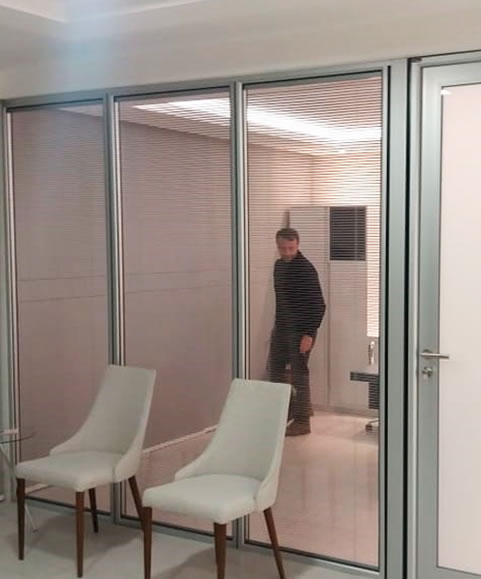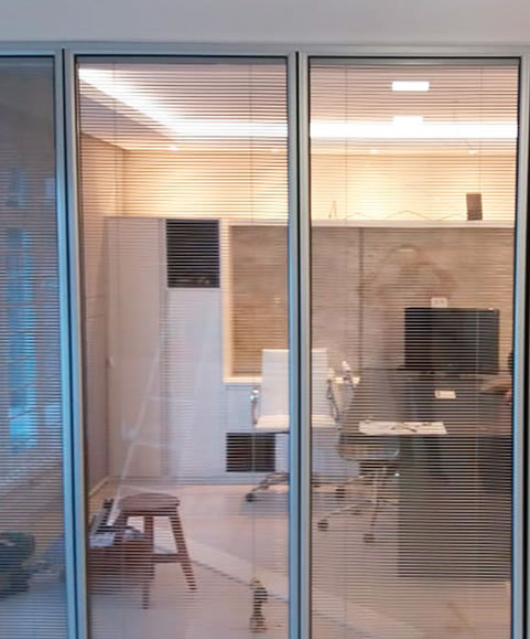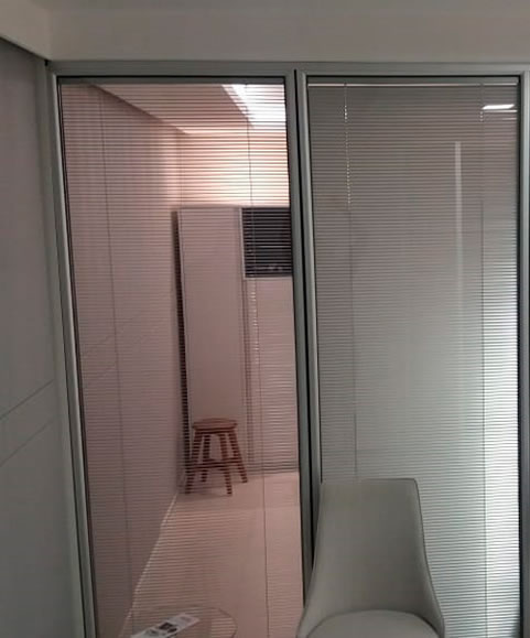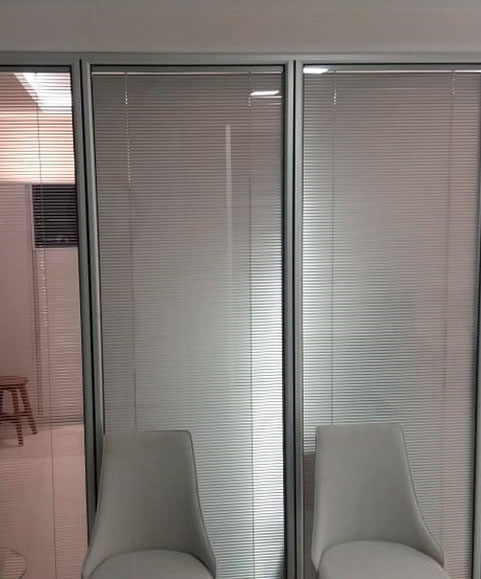 Serviço: Divisórias Vidro Duplo S60 com persiana e Coluna eletrificada com interruptor