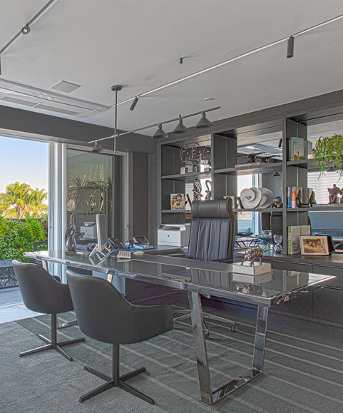 - Perfis em acabamento fosco, que agregam elegância e modernidade ao espaço.