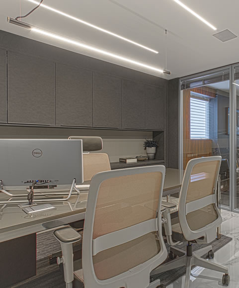- Ambientes Acústicos: A utilização de materiais acústicos em nossas divisórias ajuda a reduzir o ruído, promovendo um ambiente de trabalho mais tranquilo e confortável;