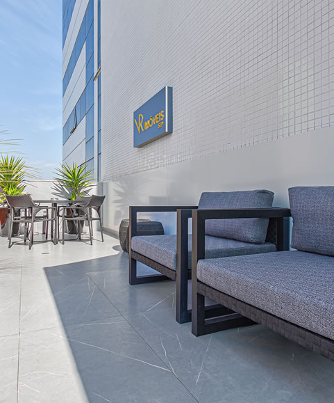 - Persianas internas, com acionamento motorizado e manual, proporcionando controle total da luminosidade e privacidade;