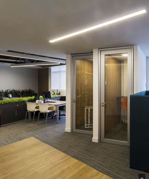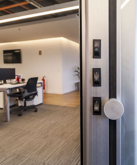 - Isolamento acústico eficiente, ideal para salas de reunião e áreas administrativas;