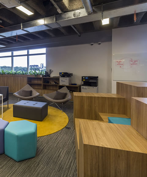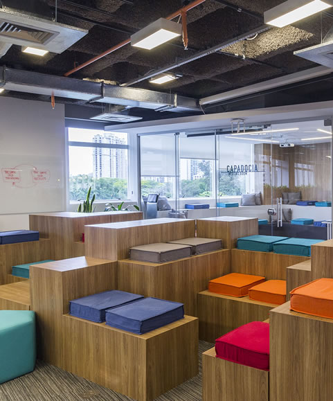 - Portfólio completo com divisórias, mobiliário e marcenaria corporativa.