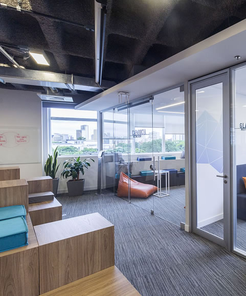 Atualle | Divisórias Acústicas | Divisórias Vidro S90 | Divisórias Corporativas | Projeto Philip Morris Brasil | Soluções Acústicas para Escritórios