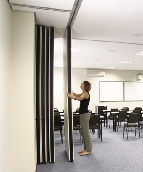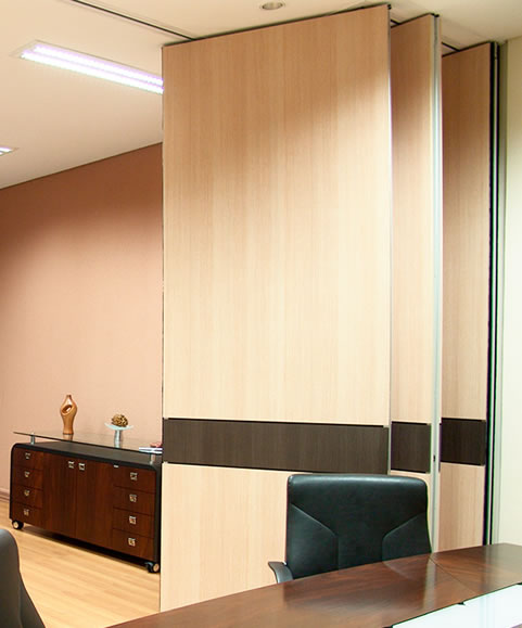 Articulável Acústica: Sistema de divisórias móveis articuladas que proporciona máxima flexibilidade ao ambiente: