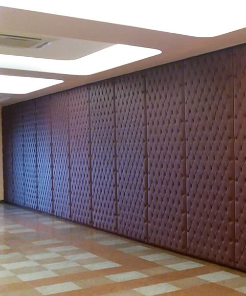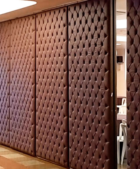 Divisória Articulável Acústica (Articolato) com Revestimento em Couro e Acabamento Matelassê e Capitonê