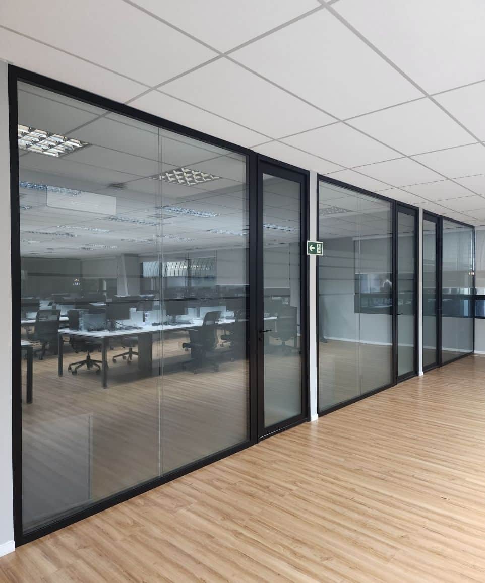 - A Divisória de Vidro Lumina é versátil e pode ser configurada em vidro simples ou vidro duplo, atendendo diferentes necessidades de estética e desempenho acústico: