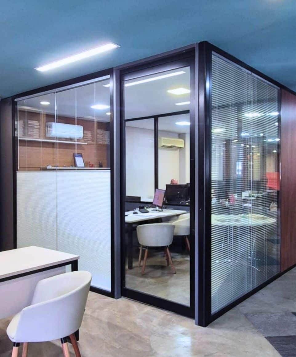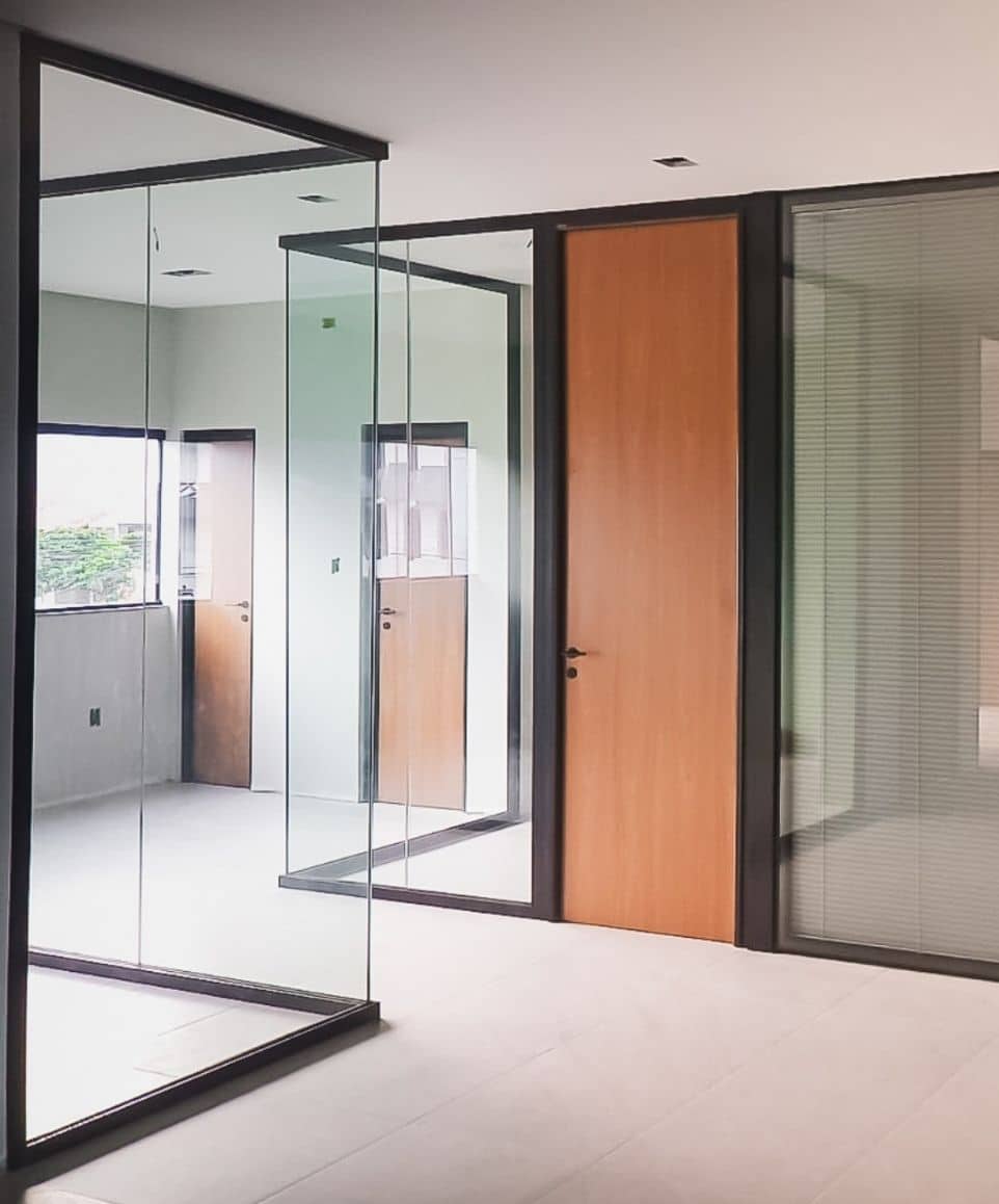 As Divisórias de Vidro Lumina foram desenvolvidas para projetos que buscam máxima leveza visual, sem abrir mão de qualidade construtiva, desempenho acústico e flexibilidade de aplicação:
