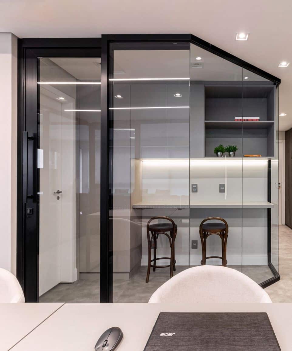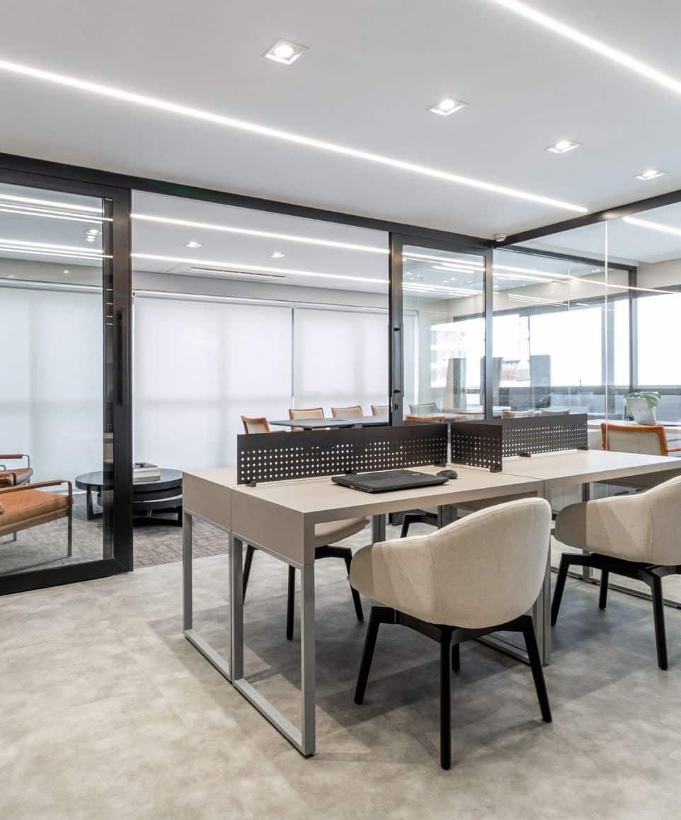 - Com estrutura minimalista e acabamentos precisos, a Lúmina valoriza a iluminação natural e integra ambientes de forma elegante, mantendo a funcionalidade necessária para espaços corporativos de alto padrão.